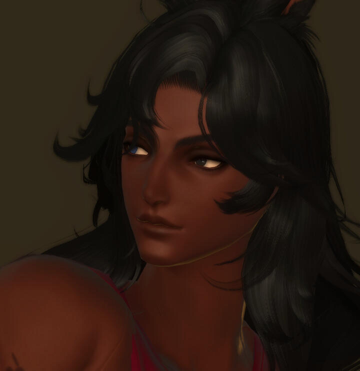 NOTE: This is all hearsay, none of this is confirmed because Lauriam refuses to talk about it.Hails from a tribe within the Azim Steppe, as to what she claims. She doesn't elaborate further on this, and tends to keep her past very secretive. Reasons for this are unclear, and trying to pry it out of her will get you on her bad side. She seems to have had a nasty run in with the Garlean Empire that has soured her taste for their people, though she seems to be slowing warming up to a couple who are nice to her.Lauriam enjoys exploring other clubs and venues, often found relaxing and chatting in Ul'dah, watching the people come and go. She loves attending Jazubā, whether on or off the clock. With her close friends, she’s playfully mean, but they all know it’s just her way of joking. If she’s teasingly mean to you, it’s her way of showing she likes you. She's flirty but finds no sexual or romantic attraction in anyone.