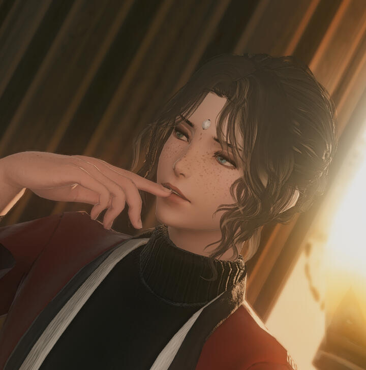 Originally born in the Sharlayan Colony, Elyas was raised by a pair of Hyur in Ishgard from age 4 onward. At age 9 they formed a pact with the voidsent Barbatos, restoring to them the use of the paralyzed left side of their body. At 17 they would leave the city on an errand, and be forbidden re-entry, their papers torn up. At this point they set off for Ul’dah, where they would meet Kaiyo Mikazuki 3 years later. They are an accomplished adventurer, a skilled voidsent hunter, and an occasional performer in the Masked Carnivale. They often take additional work on the side to fund some of their more... esoteric ventures. Researching ancient magicks, stocking up on strange alchemical reagents, normal things.